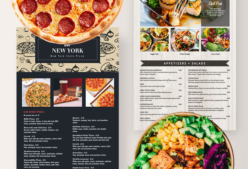 Try our mouth-watering restaurant menu designs. Easily customize to match your brand. Make edits whenever you need. Designed by professionals, customized by you.