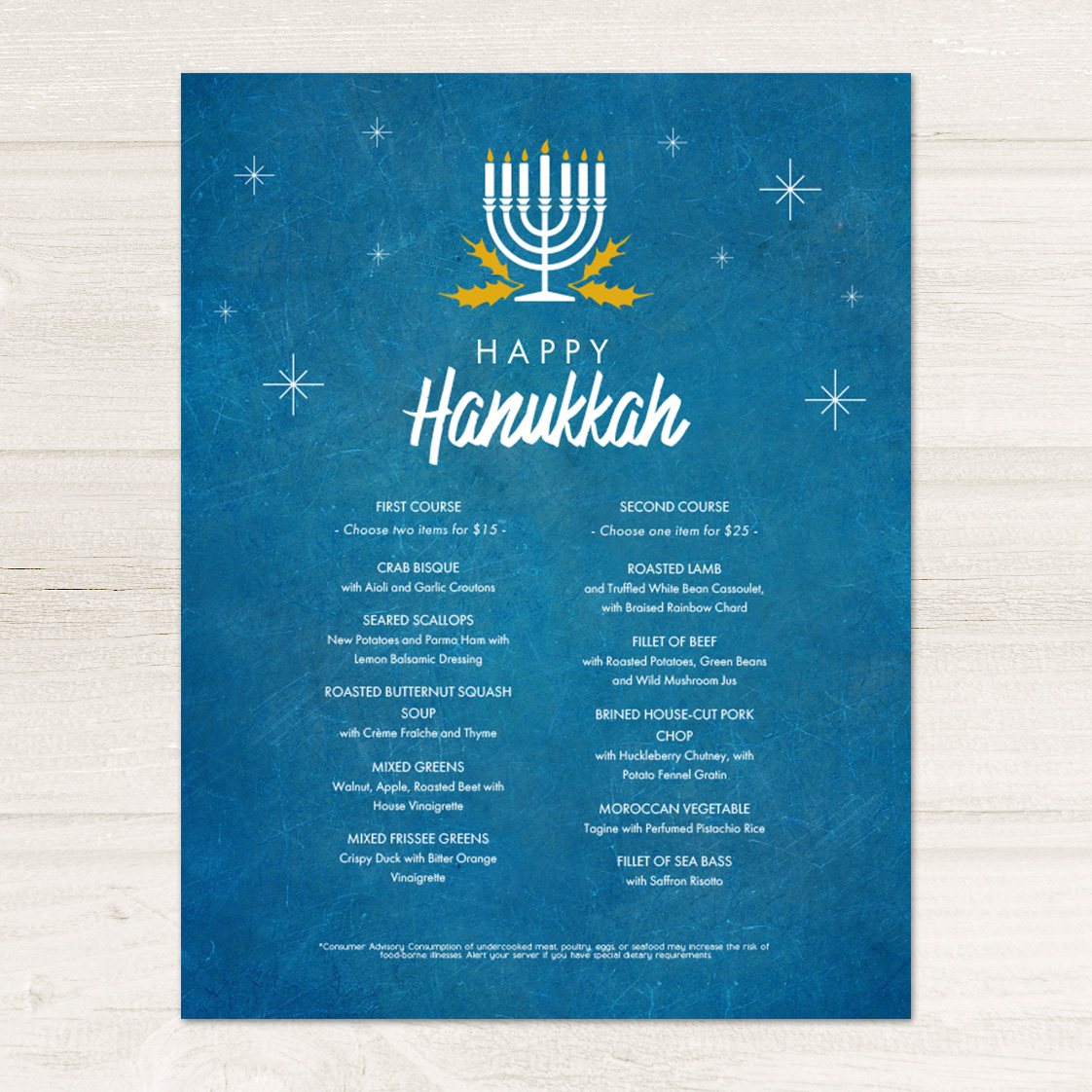 Celebrate the festival of lights with gorgeous Hanukkah menu designs.
