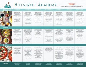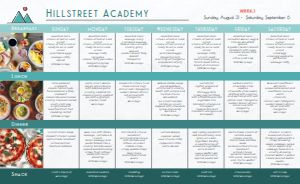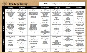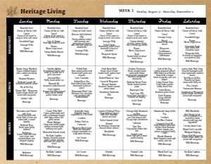 Legal Sized Floral Grid Weekly Meal Schedule for Assisted Living Communities